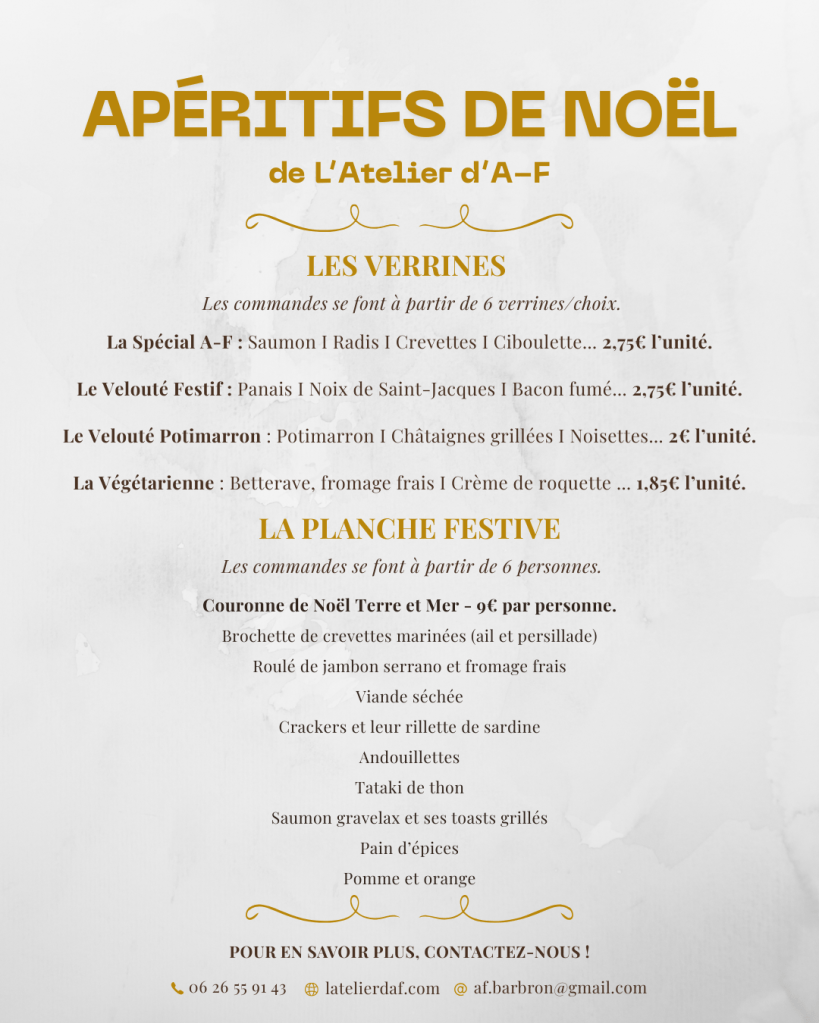 Les commandes sont possibles à partir de 6 pièces/choix et de 6 personnes pour la planche festive. Remplissez le formulaire ci-dessous, et nous vous recontacterons prochainement.